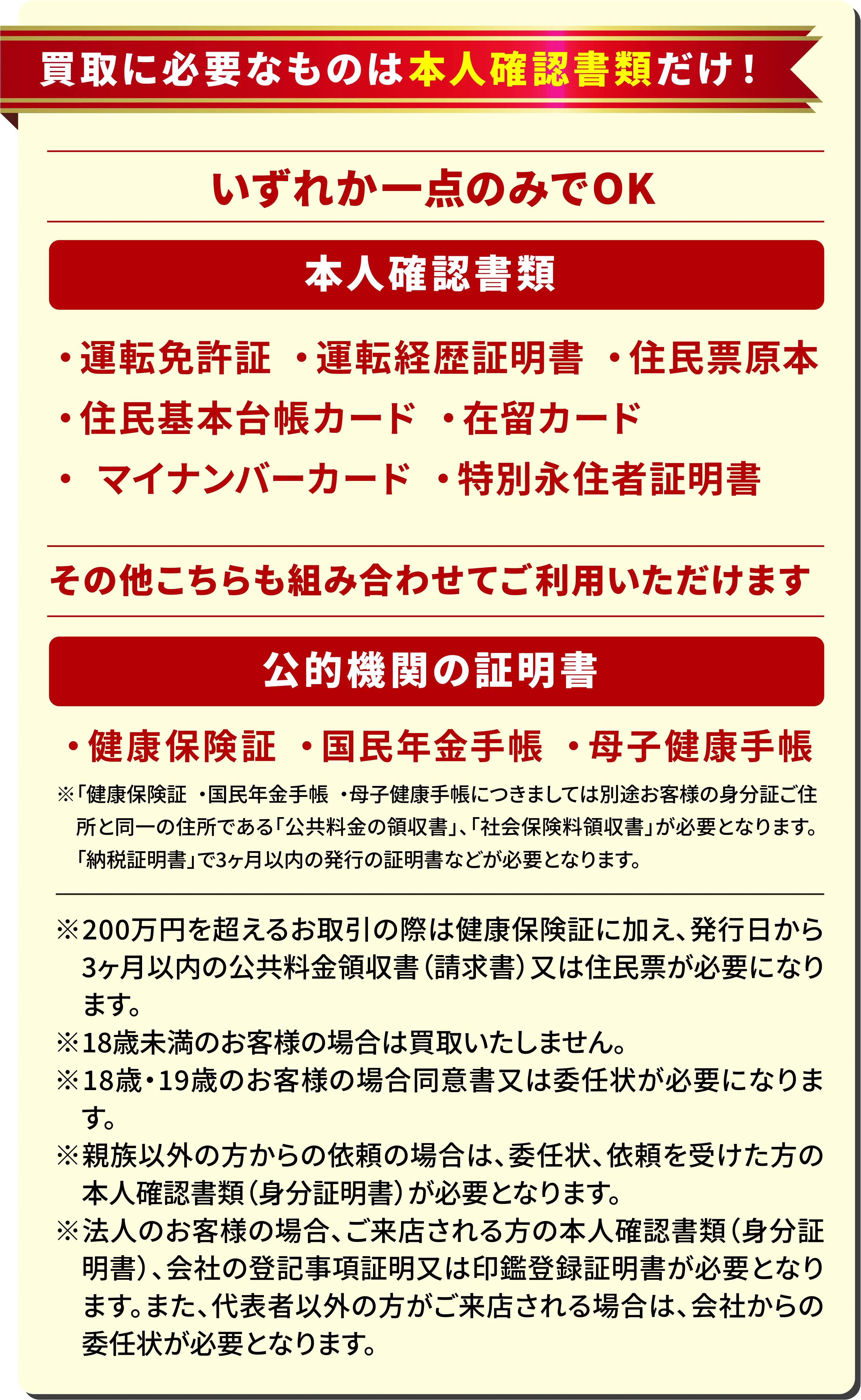 | 加盟団体及び許認可番号 | 古物商許可番号:大阪府公安委員会 第621012100382号 古物市場主許可証:大阪府公安委員会 62101R058501 特別国際種事業者番号:第02626号 酒販免許:北税務署 北法第299号 AACD(日本流通自主管理会)会員番号 / R-0100 プライバシーマーク認定取得(JUAS) 17003773 |
