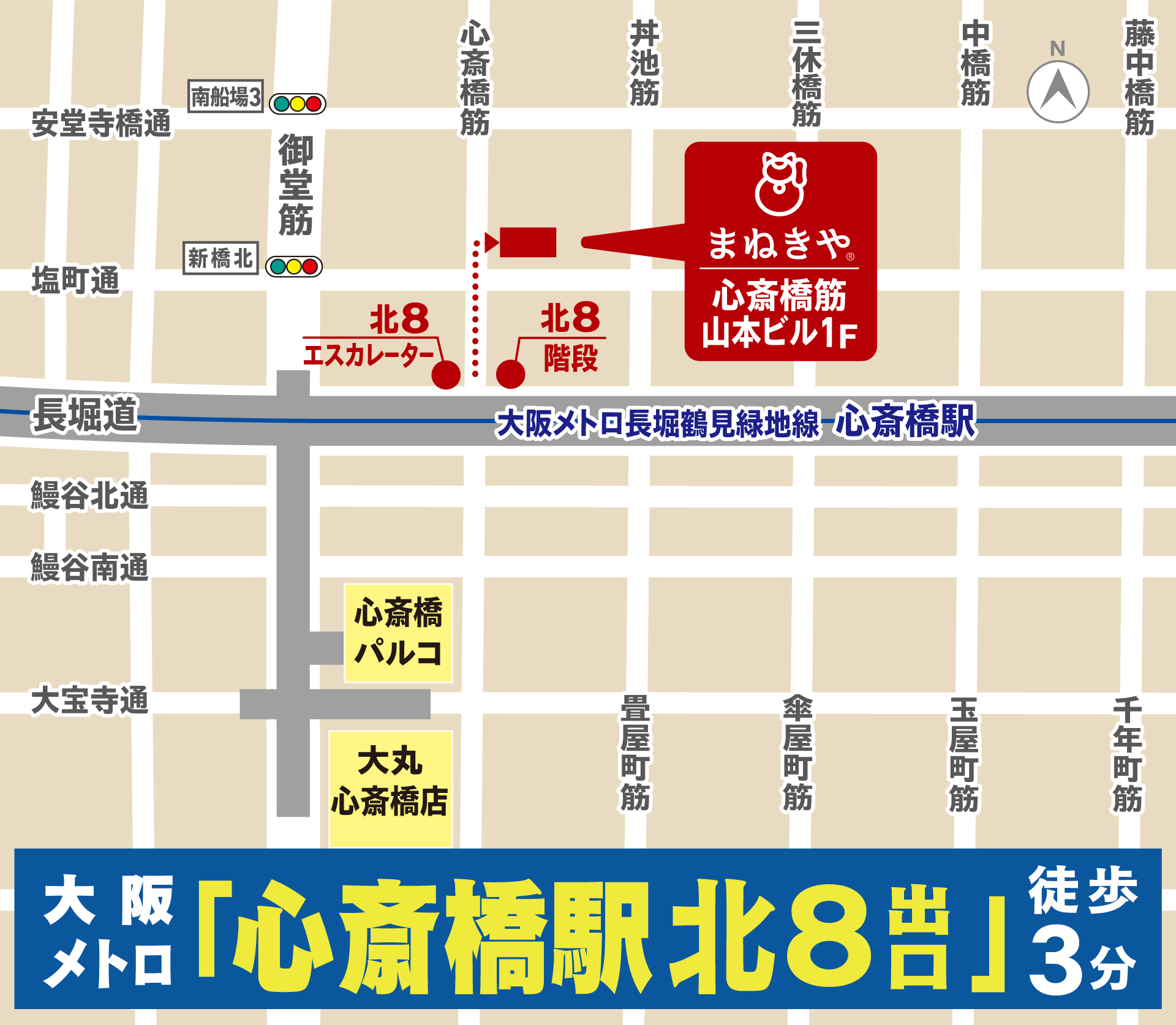 大阪メトロ御堂筋線心斎橋駅徒歩3分